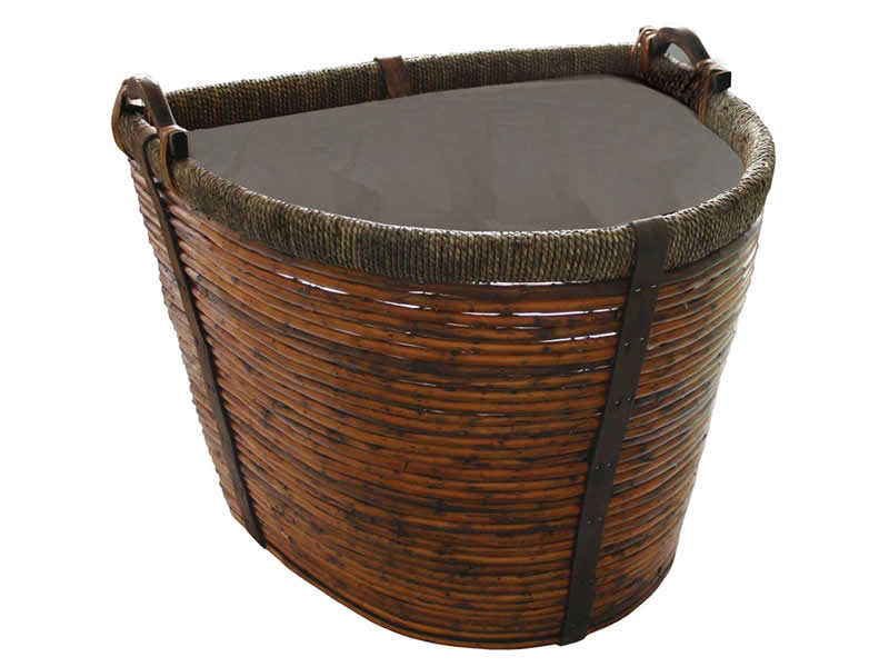 Cesta Portalegna in rattan con manici e fondo in legno, all’interno il rivestimento in tessuto per non sporcare.