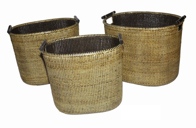 Elegante portalegna in Rattan di forma ovale con manici e fondo in legno ideale anche per la biancheria e giocattoli.