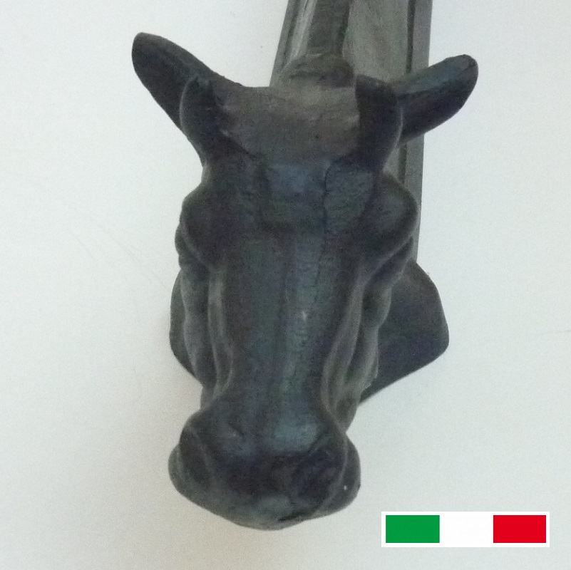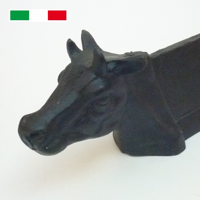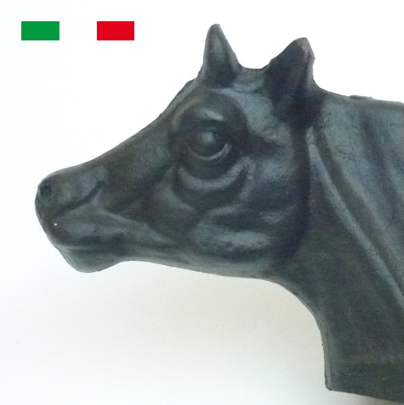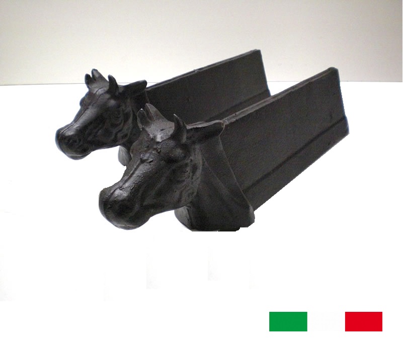Alari in ghisa con la testa della mucca.