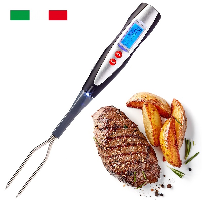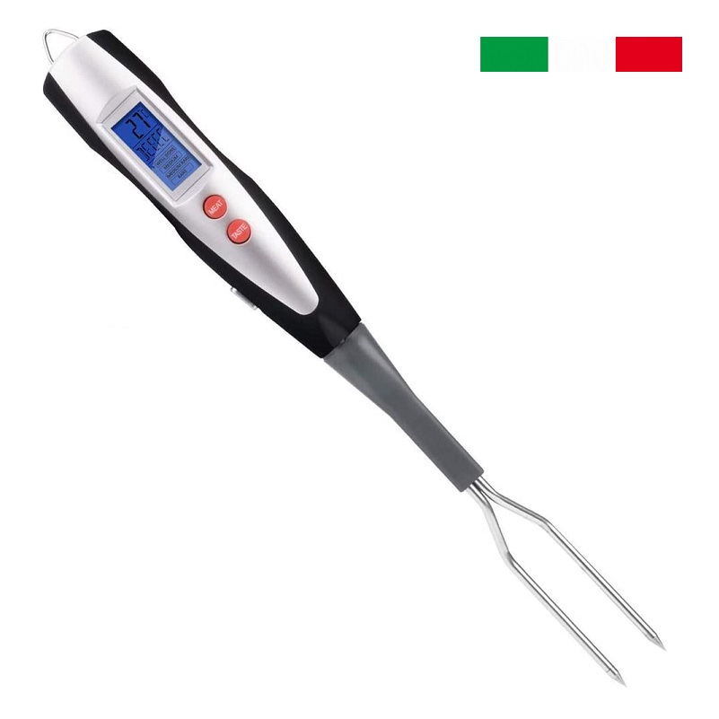 Questo forchettone è perfetto per misurare velocemente la temperatura interna della carne o del pesce durante la cottura in forno o alla griglia.