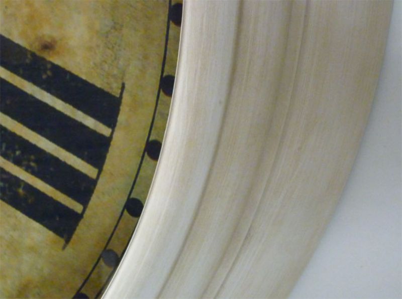 Orologio da Parete, sopracamino di grande diametro, realizzato in metallo stampato con quadrante invecchiato, numeri romani e lancette sotto vetro. Bello sulla parete del vostro salone, ingresso o cucina.