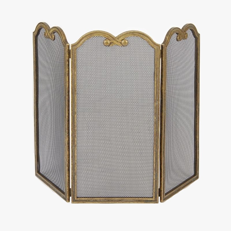Elegante parascintille in ottone a tre ante uguali con soggetto “NODI”.