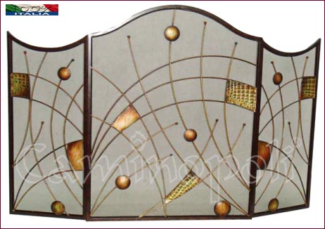 Parascintille 3 ante, struttura in ferro modellato e decorato a mano, montato con rete metallica fermascintille per l’intero corpo.
