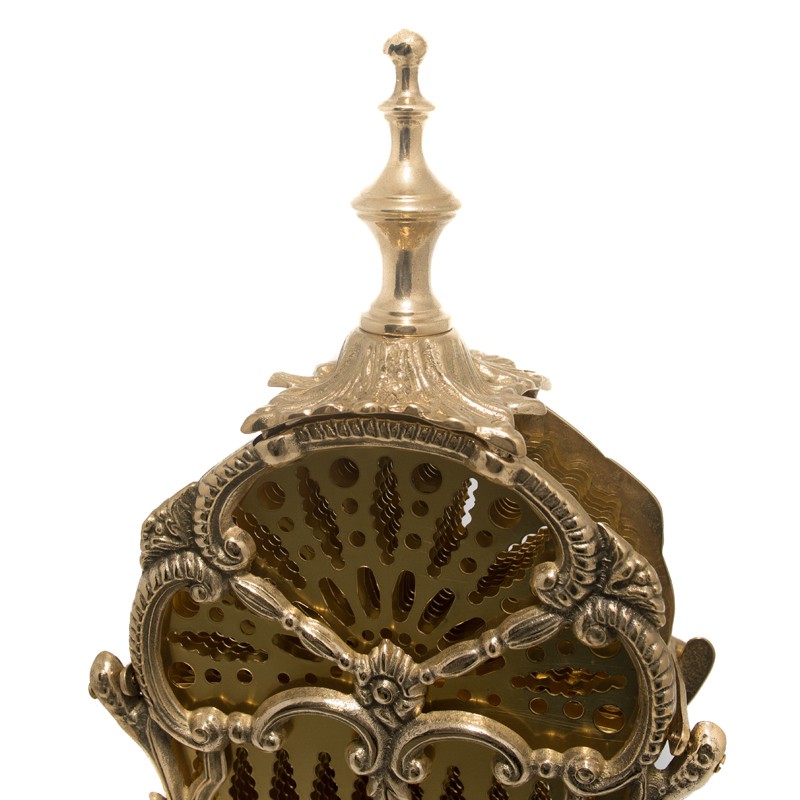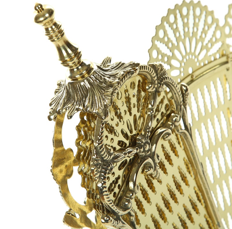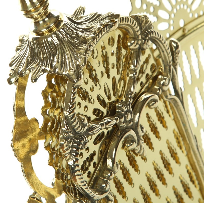 Parascintille a Ventaglio fuso in un’antichissimo stampo con 300 anni di storia, la realizzazione di questo parascintille chiudibile a coda di pavone è composta da più stampi, interamente in ottone e proposto in due finiture con disponibilità immediata: