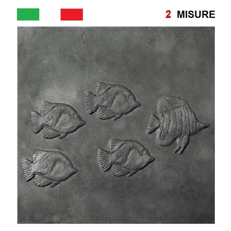 Piastra da camino in ghisa e decorata e con soggetto pesci, proposta in due misure e tutte disponibili.