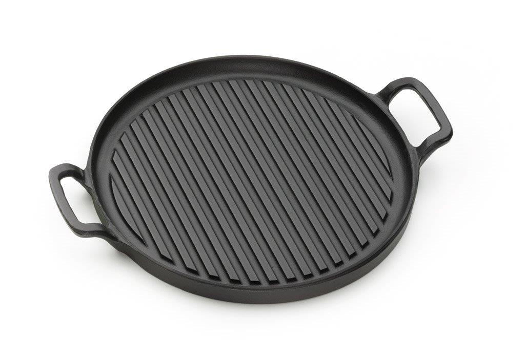 Piastra Tonda da 27 cm, in Ghisa per la cottura di cibi, Rigata con Manici per una facile presa.