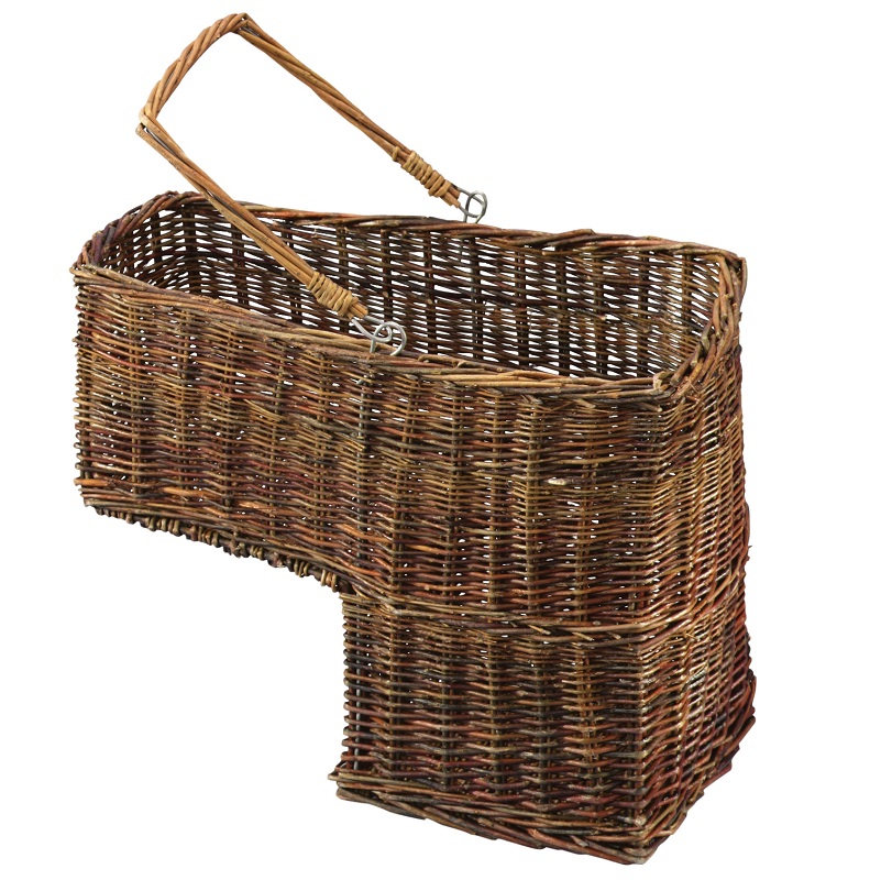 Portalegna con manico pieghevole da gradino in vimini o rattan, molto utile quando gli spazi a disposizione ci chiedono di sfruttare la seduta del camino o i gradini delle scale, ideale per la legna piccola o per deporre gli accessori con gli accendifuoco.