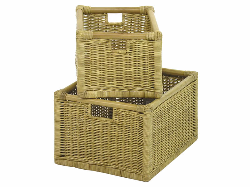 Cesta in Rattan a forma cassetto rettangolare con manici.