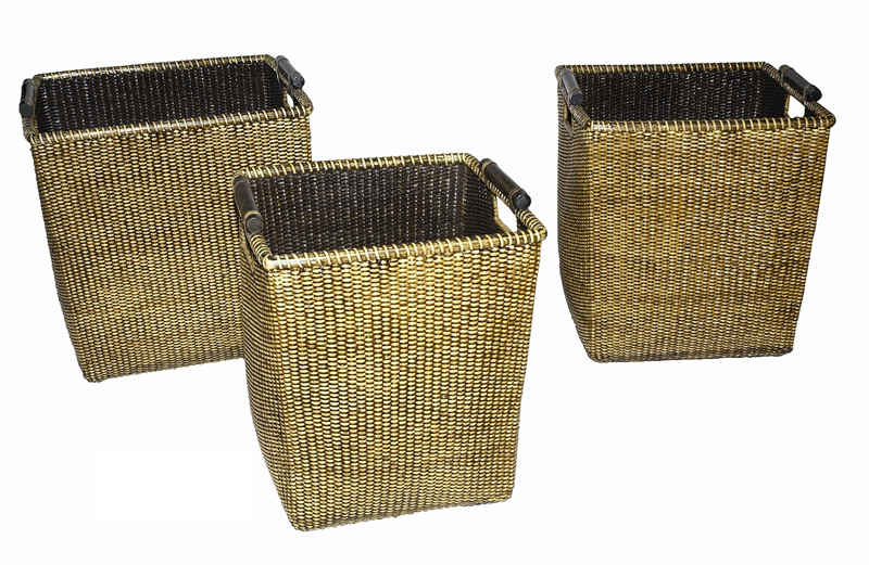Cesta portalegna in Rattan con elegante tessitura di forma quadra con manici e fondo in legno.