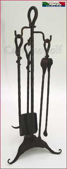 Set di attrezzi 3+1 pezzi in ferro forgiato con impugnatura ritorta a mano.