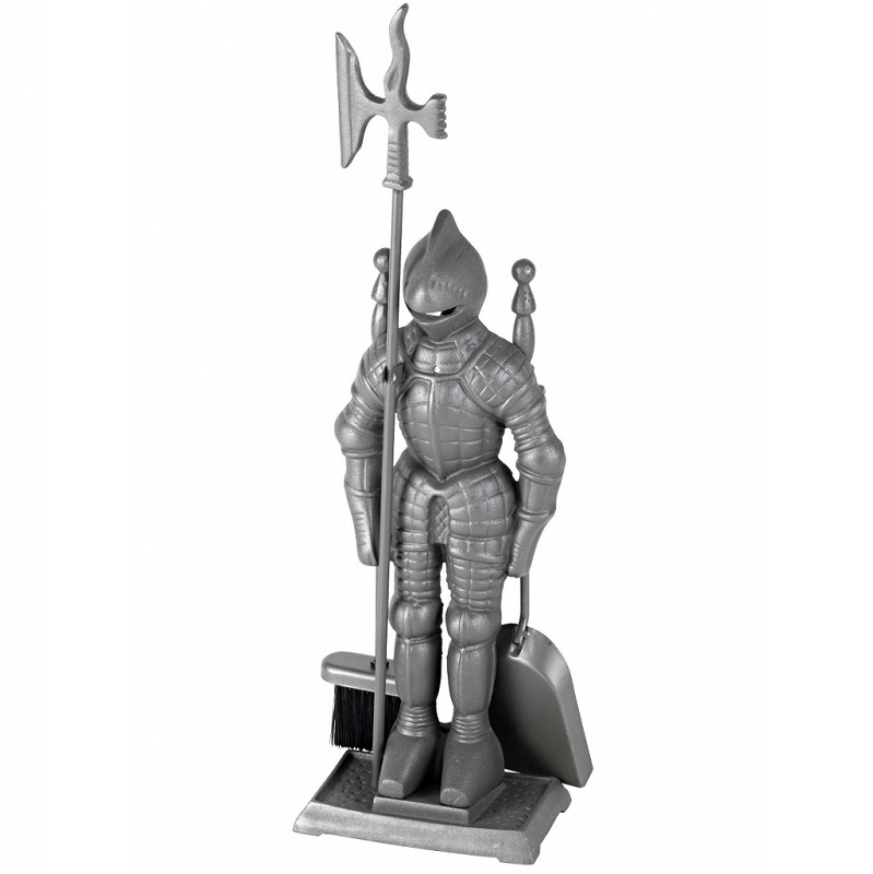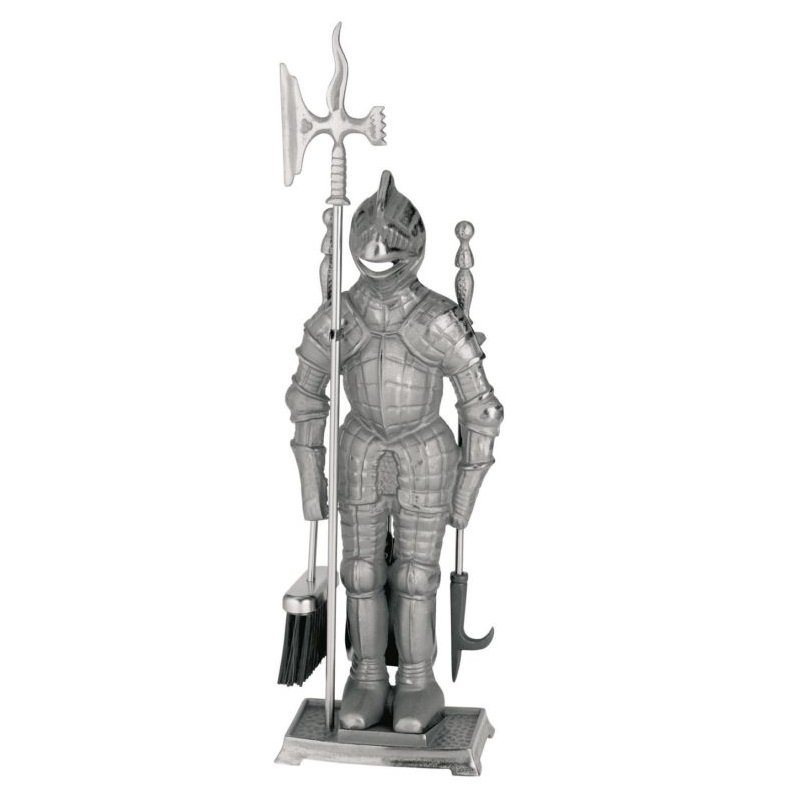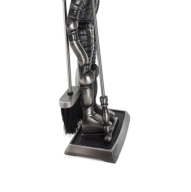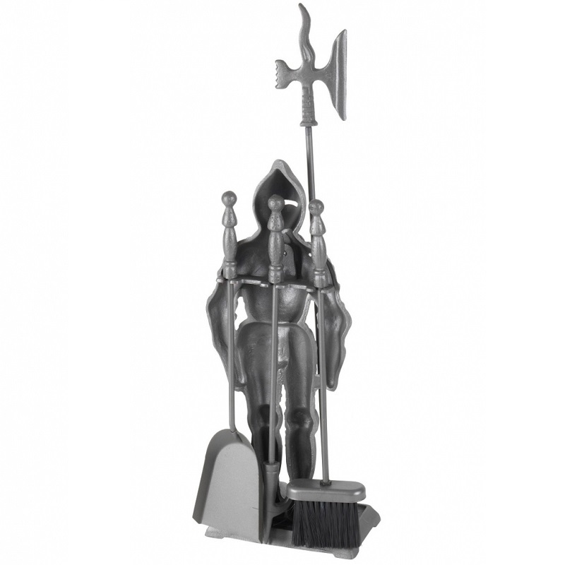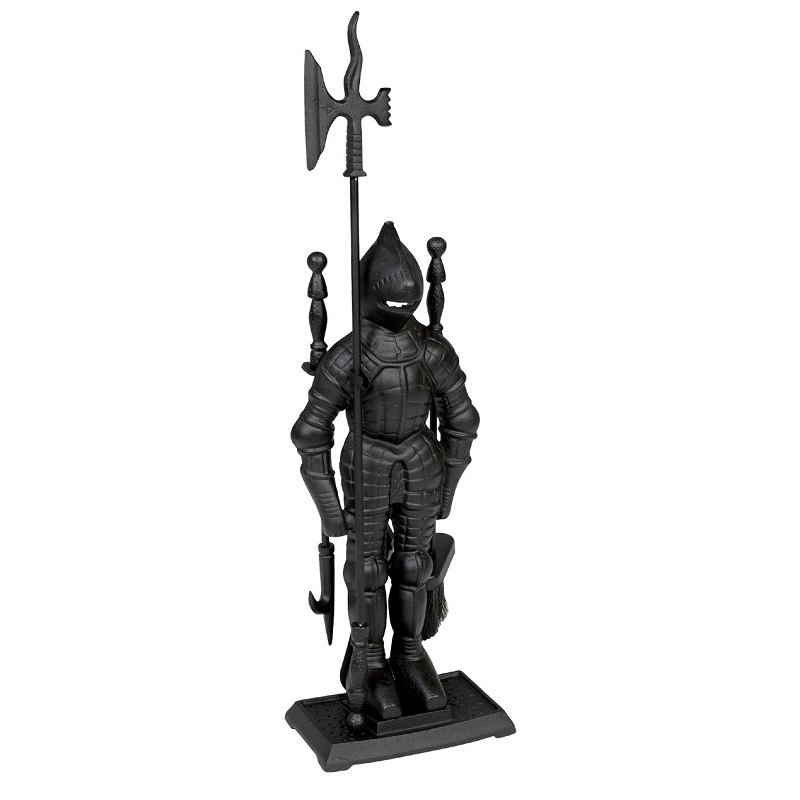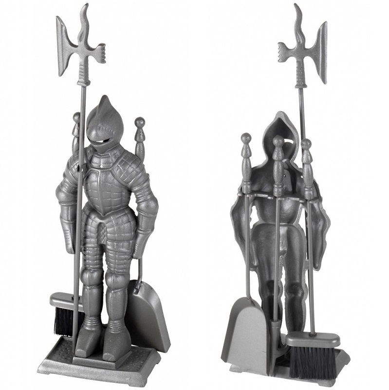 Set ornamentale da mettere davanti al camino raffigurante un guerriero in ghisa.