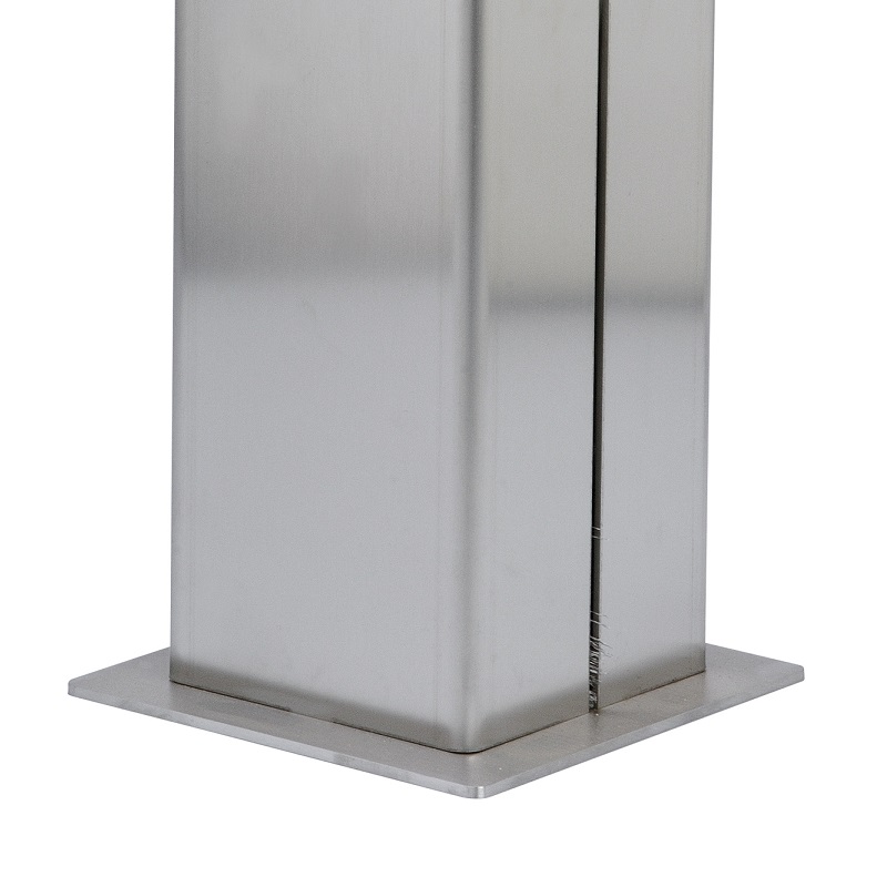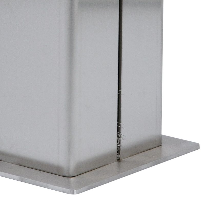 Set di attrezzi 4+1 pezzi e realizzato interamente in acciaio satinato, composto da contenitore di forma quadra con gli attrezzi anche loro con impugnatura di forma quadra, Scopino, Paletta, Pinza ed Attizzatoio.