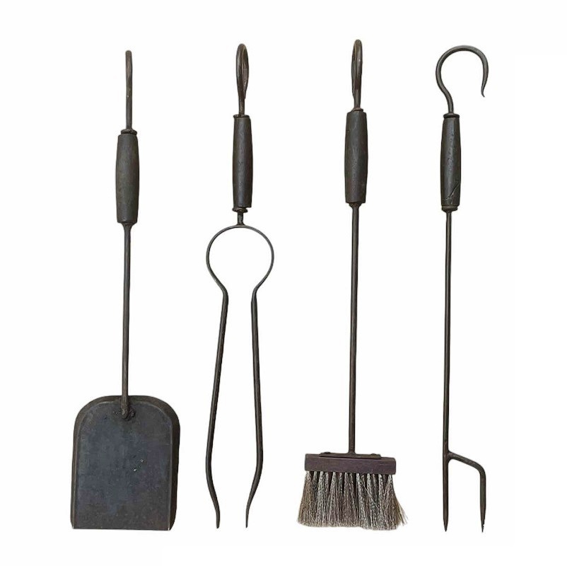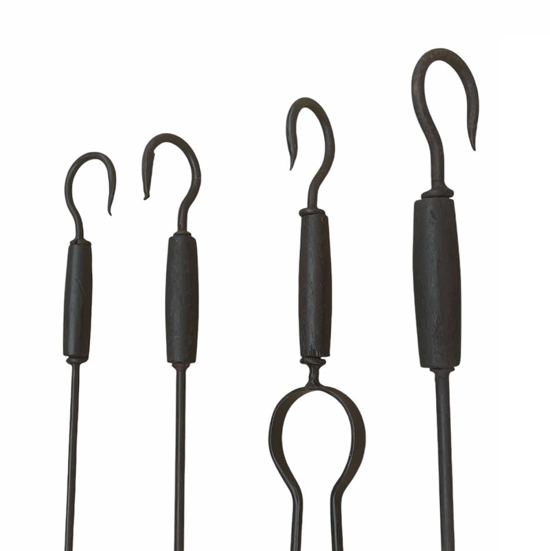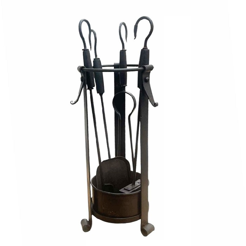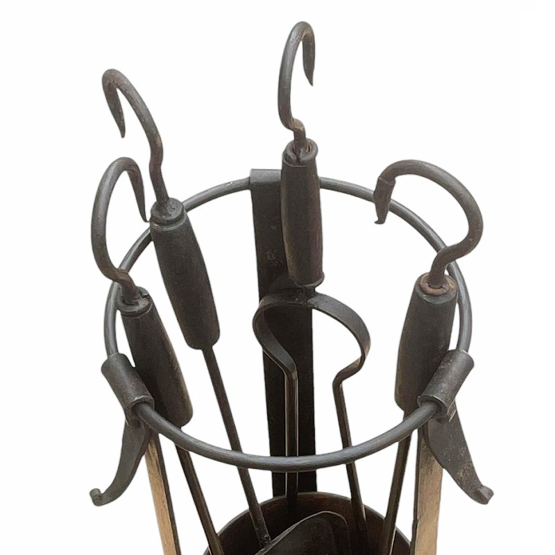 Set di attrezzi 4+1 pezzi in ferro forgiato e legno.