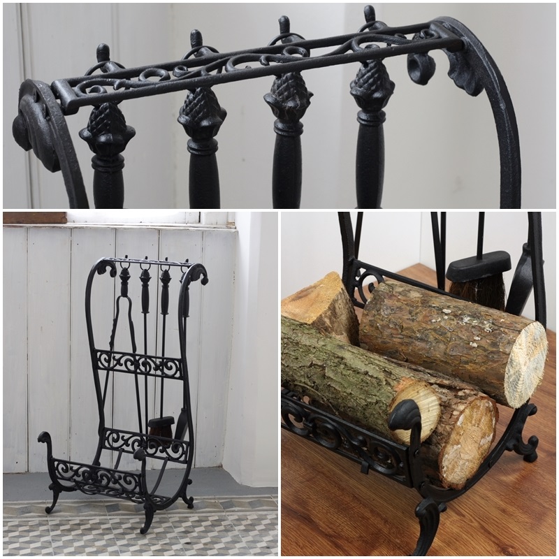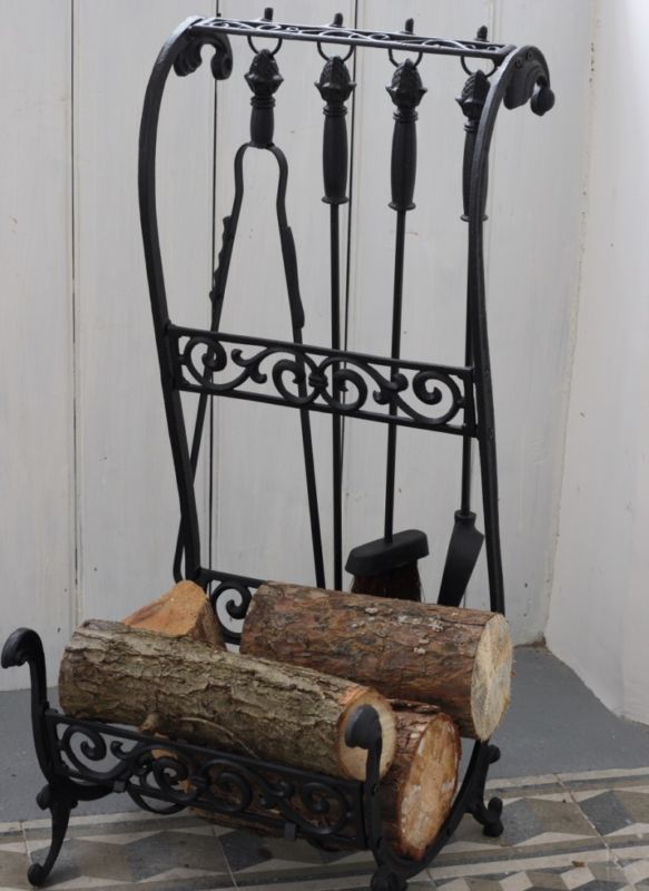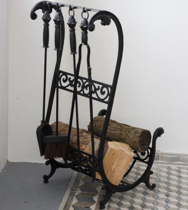 Portalegna in Ghisa con attrezzi per il Caminetto.