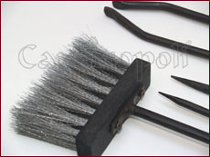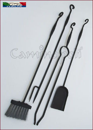 Set di attrezzi 4 pezzi in ferro forgiato che viene fornito senza alcun trespolo.Il ferro è privo di qualsiasi processo industriale, è rustico ed usando questi attrezzi avrete il piacere di sentire tra le mani la fatica dell’artigiano che lo ha realizzato.M714+52A11