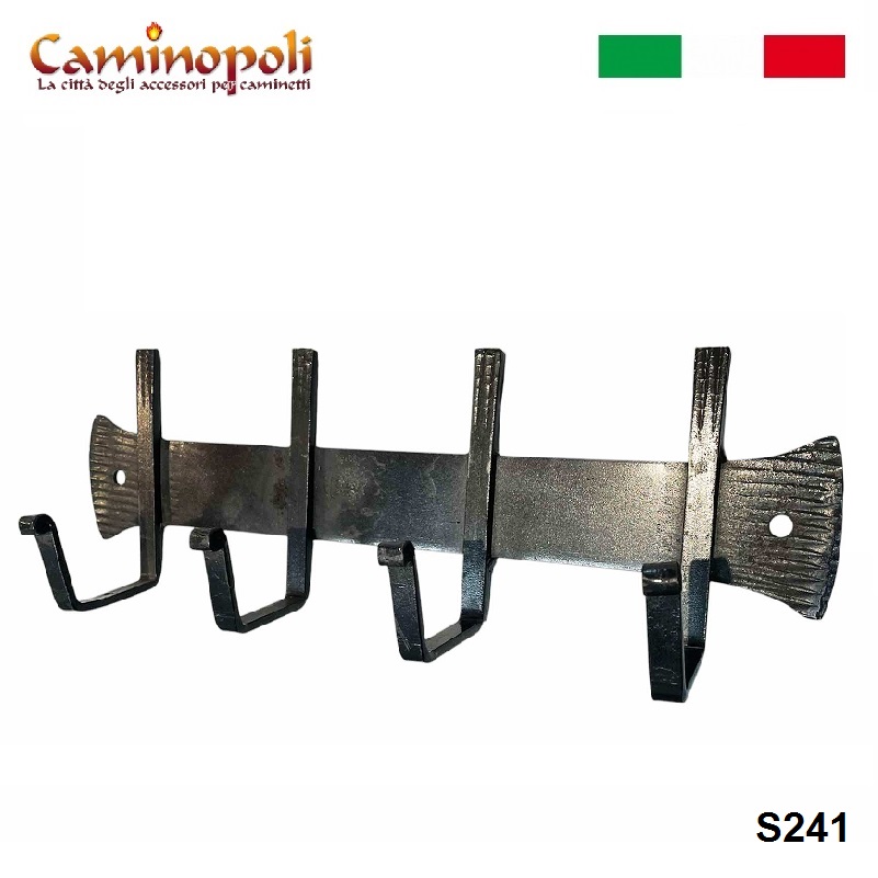 Realizzato in ferro battuto il kit è composto da una barra che si applicherà al muro con due fischer e 4 attrezzi.