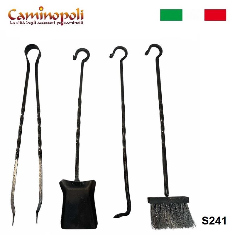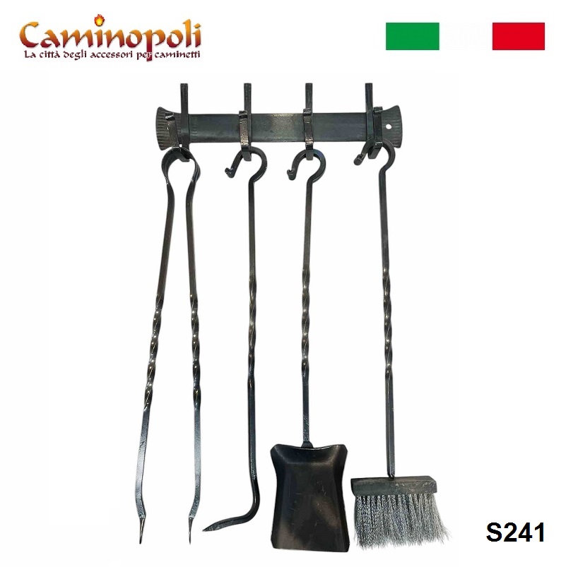Set Attrezzi in ferro battuto a Parete S241 da mettere sul Muro del Camino.