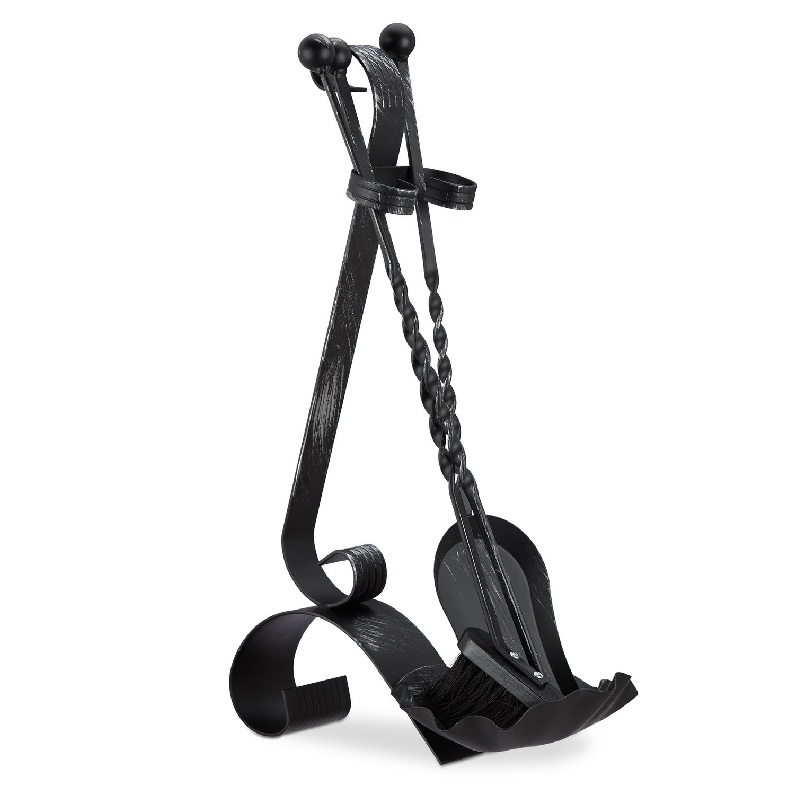 Set attrezzi Camino con Portalegna in Ferro Battuto.